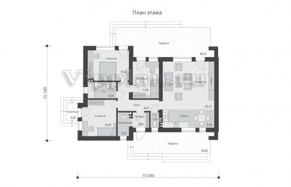 | Размеры дома: | 15.04м×10.14м |