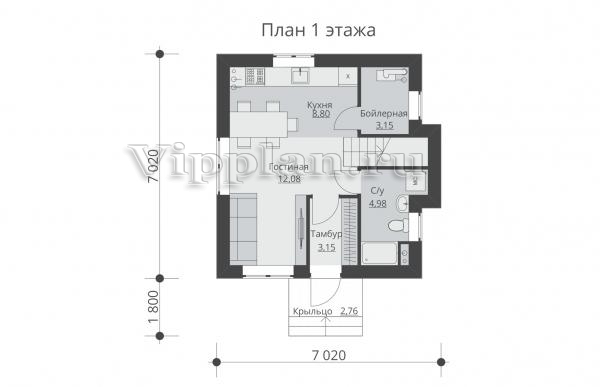 | Размеры дома: | 7.02м×7.02м |